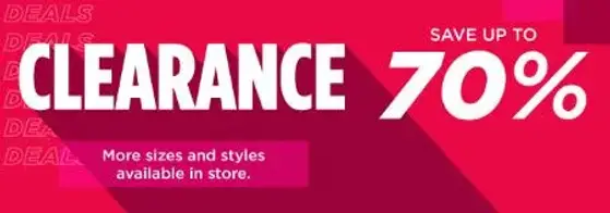 Hurry in and save up to 70% on clearance items in store for a limited time.