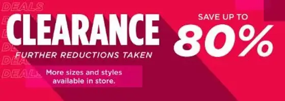 Hurry in and save up to 80% on clearance items in store for a limited time.